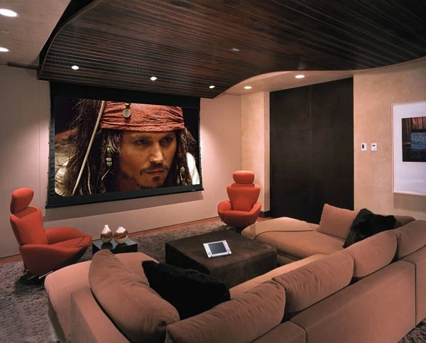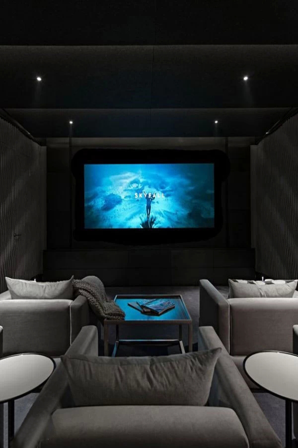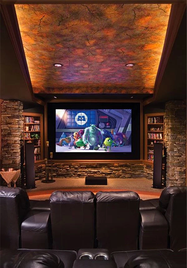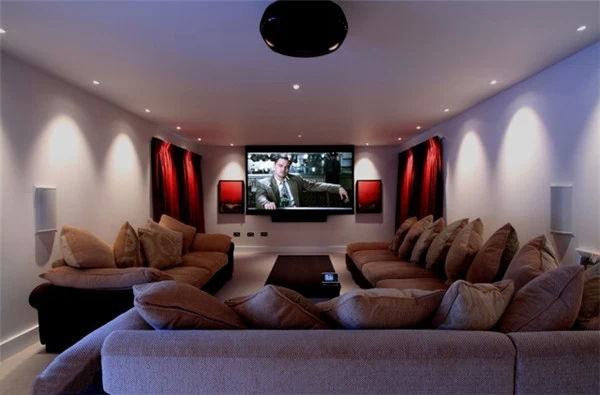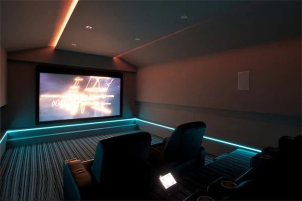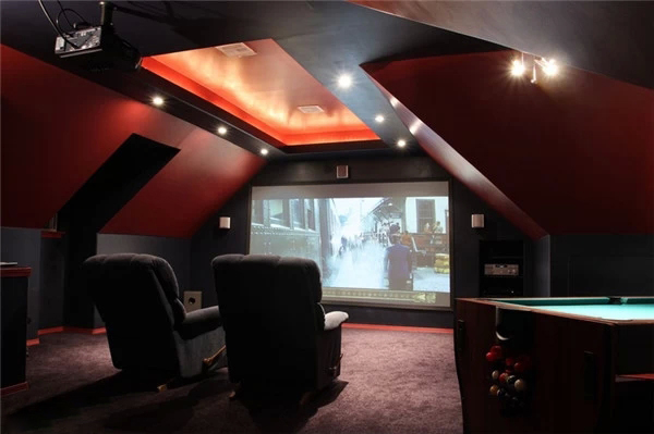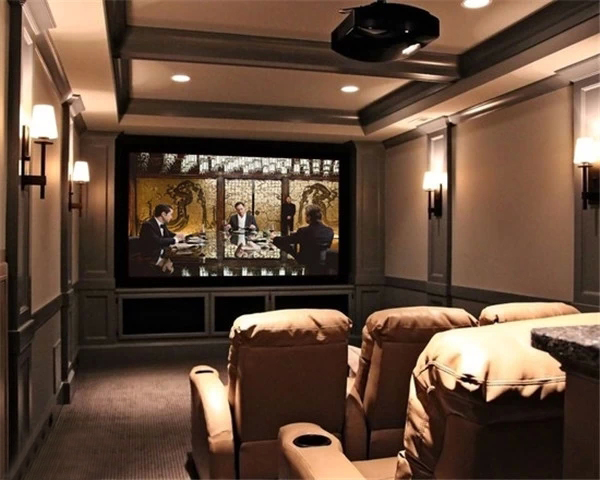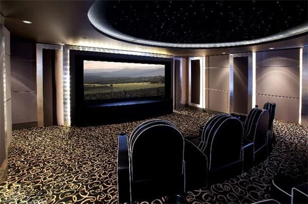 上海豪宅裝修中不可不炫酷的影視廳,家庭影院是要在家庭環(huán)境中搭建的一個(gè)接近影院效果的可欣賞電影享受音樂的系統(tǒng),可讓家庭用戶在家欣賞環(huán)繞影院效果的影碟片、聆聽專業(yè)級(jí)別音響帶來的音樂、并且支持卡拉OK娛樂。想想也是蠻浮夸的!不過我家一定要有!
