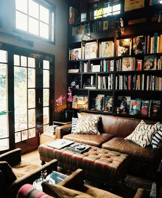 歐美風(fēng)格裝修設(shè)計(jì):大大的書(shū)架是整個(gè)房間最亮眼的作品,古典式的家具配上現(xiàn)代感超強(qiáng)的條紋,一點(diǎn)都不顯古板,反而透露著濃濃的書(shū)香味。