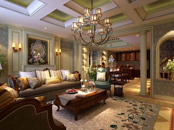 歐美風(fēng)格裝修設(shè)計(jì):開(kāi)放式的客廳設(shè)計(jì),客廳和餐廳完美地融合在一起,空間上并不會(huì)給人擁擠的感覺(jué),反而顯得大氣十足。客廳的擺設(shè)搭配地板和各種家具,顯得溫暖舒心,墻面的裝飾和吊頂設(shè)計(jì),讓客廳的裝飾顏色的造型合理搭配,高貴華麗的感覺(jué)不言而喻。