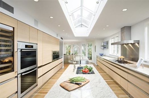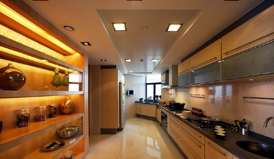 與普通消費(fèi)者相比,別墅的房主更注重整體廚房的美學(xué)效果、藝術(shù)協(xié)調(diào)和品牌。簡單地說即是整體的設(shè)計(jì)感、個(gè)性化,同時(shí)功能要齊全。廚房可以顯示主人的品位,這種品位主要體現(xiàn)在一些有創(chuàng)意的設(shè)計(jì)上,別墅廚房吊柜可以設(shè)計(jì)一些玻璃門或吊格,柜內(nèi)安裝圓杯燈,便于存放收藏品或書籍。