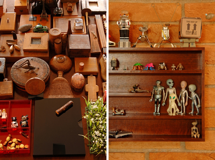 巴西建筑大師Marcio Kogan的家充滿了玩味與豐富元素,也許這和他原來是位電影制片人有關(guān)系。他的家在一座建筑的12樓——那座建筑是他1980年首次參加建筑比賽獲獎(jiǎng)的一個(gè)作品。這個(gè)家的視野是窗外城市的天空,也是屋內(nèi)琳瑯滿目的擺件:無論是鋼琴上還是柜子上,擺滿了手稿、家具模型、旅行紀(jì)念品或是書籍。Kogan記得其中每件東西的來源和故事,他的家是他自己的記憶博物館。