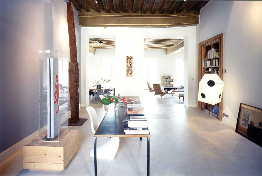 一張桌子、一個(gè)窗戶、一個(gè)皇家廣場(chǎng),雕像和馬。在巴黎孚日廣場(chǎng)附近,F(xiàn)uksas建筑師夫婦住在這里。設(shè)計(jì)大師Jean Prouvé的原版家具、或是20世紀(jì)的不少經(jīng)典設(shè)計(jì),還有一些民間工藝品在這個(gè)寬闊的空間內(nèi)協(xié)調(diào)一致。在入口處還有一個(gè)戰(zhàn)士雕像等待著這對(duì)建筑師遠(yuǎn)途出差回來的時(shí)刻。